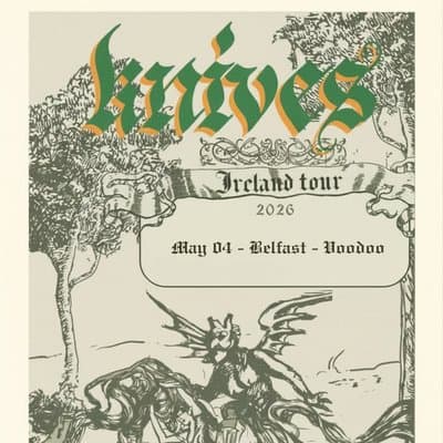 Back to What's OnShareWhat's Onvia SkiddleKNIVES Belfast8 April 2026Bristolian noise outfit KNIVES headline Voodoo, Belfast as part of their 2026 Irish tour!Read full article at SkiddleI'm interestedComments No comments yet. Be the first to share your thoughts!